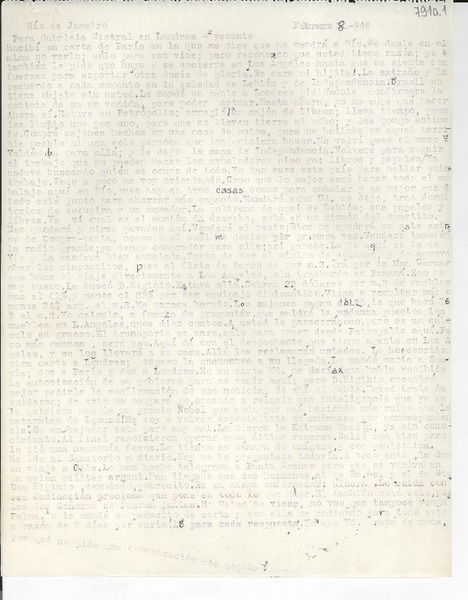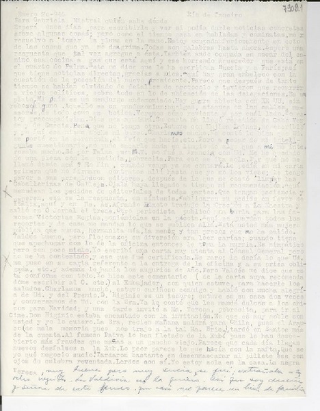 [Carta] 1945 ene. 24, Río de Janeiro, [Brasil] [a] Gabriela Mistral [manuscrito] Martha [Salotti].