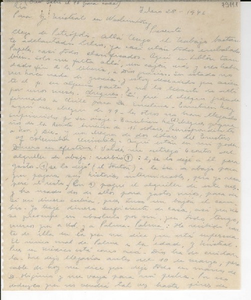 [Carta] 1942 nov. 27, Washington D. C. [a] Gabriela Mistral [manuscrito] María Rosa [Oliver].