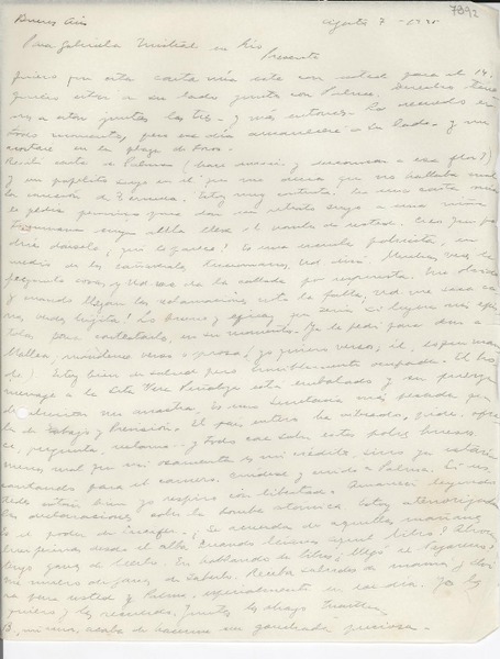[Carta] 1945 ago. 7, Buenos Aires, [Argentina] [a] Gabriela Mistral, Río [de Janeiro, Brasil] [manuscrito] Martha S[alotti].