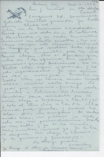 [Carta] 1944 nov. 7, Buenos Aires, [Argentina] [a] Palma [Guillén] [manuscrito] Martha S[alotti].