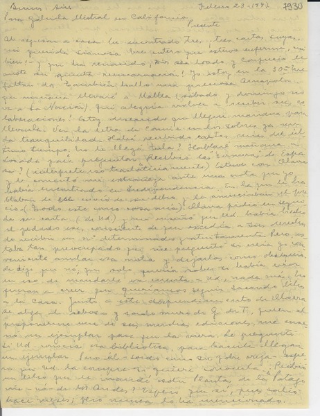 [Carta] 1978 feb. 28, Buenos Aires, Argentina [a] María Luisa Bombal [manuscrito] Adelia Vieyra.