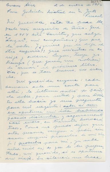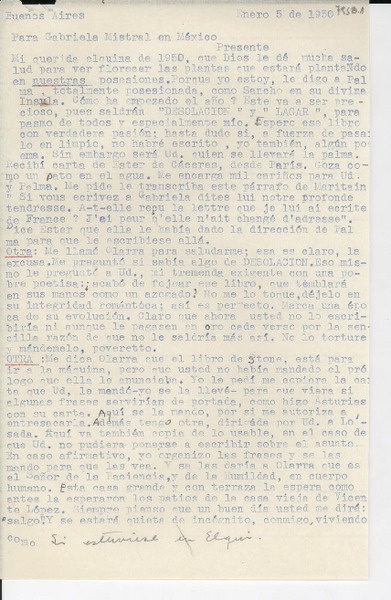 [Carta] 1943 ene. 16, Buenos Aires, [Argentina] [a] Gabriela Mistral, Río [de Janeiro, Brasil] [manuscrito] Martha [Salotti].