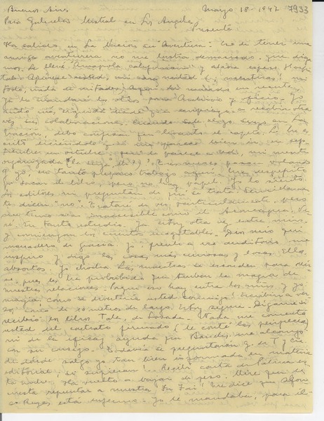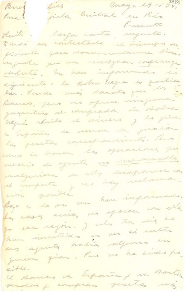 [Carta] 1941 mayo 15, Buenos Aires [a] Gabriela Mistral, Río de Janeiro [manuscrito] Martha [Salotti].