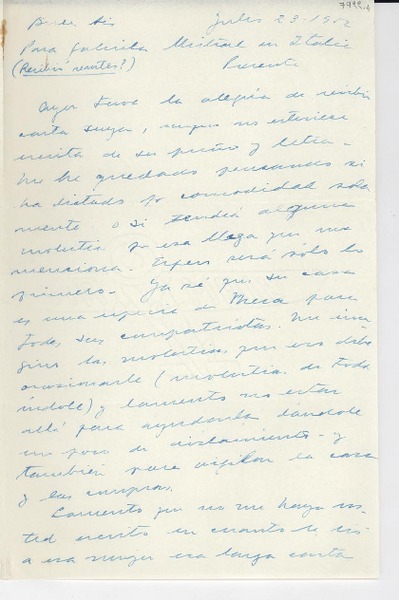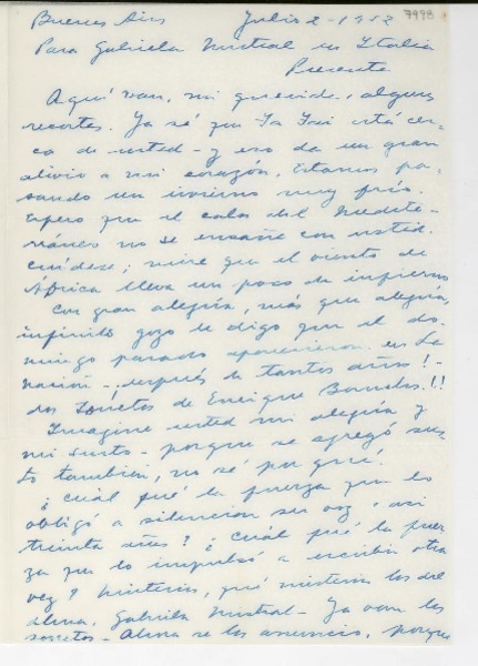 [Carta] 1942 jul. 27, Buenos Aires [a] Gabriela Mistral, Río [de Janeiro] [manuscrito] Martha [Salotti].
