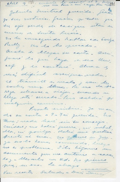 [Carta] 1945 abr. 7 [a] [Gabriela Mistral] [manuscrito] Martha [Salotti].