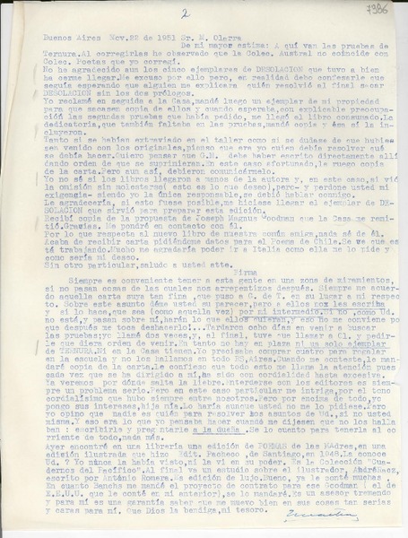 [Carta] 1942 nov. 5, Buenos Aires, [Argentina] [a] Gabriela Mistral, Río [de Janeiro], [Brasil] [manuscrito] Martha [Salotti].