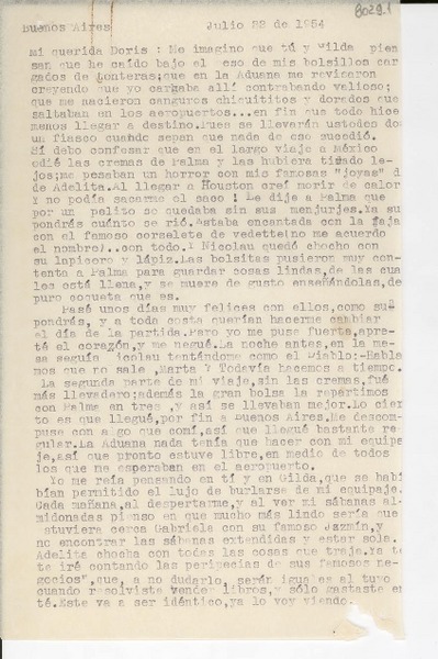 [Carta] 1945 ago. 22, Buenos Aires, [Argentina] [a] Gabriela Mistral, Río, [Brasil] [manuscrito] Martha [Salotti].