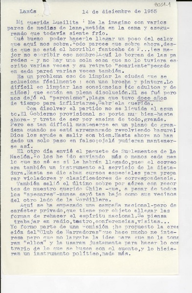 [Carta] 1955 dic. 14, Lanús, [Argentina] [a] Lucilita [manuscrito] Martha [Salotti].