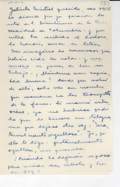 [Carta] 1944 mayo 4, Buenos Aires, [Argentina] [a] Gabriela Mistral, Río, [Brasil] [manuscrito] Martha [Salotti].