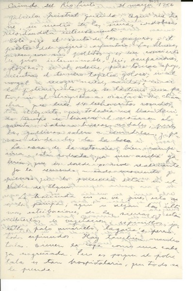 [Carta] 1956 mar. 21, Cañada del Río Pinto, [Argentina] [a] Gabriela Mistral [manuscrito] Martha S[alotti].