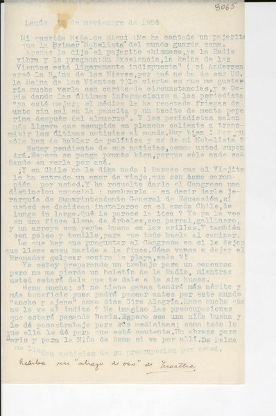 [Carta] 1956 nov. 26, Lanús, [Argentina] [a] [Gabriela Mistral] [manuscrito] Martha [Salotti].