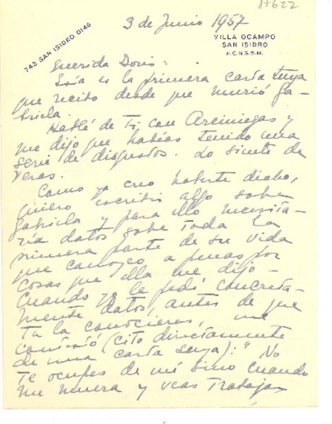 [Carta] 1957 jun. 3, Buenos Aires, Argentina [a] Doris Dana [manuscrito] Victoria [Ocampo].