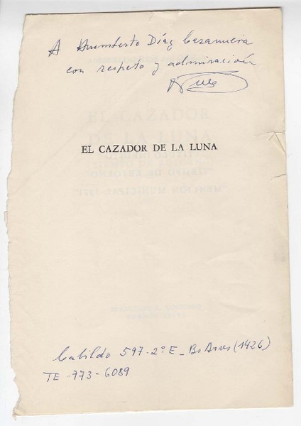 [Dedicatoria] c.1970, Buenos Aires, Argentina [a] Humberto Díaz-Casanueva [manuscrito] Ruth Fernández.