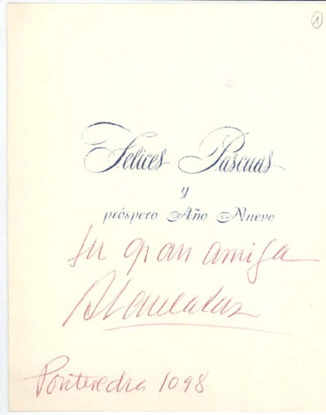 Mistral, Gabriela - Manuscritos uruguayos - Autoras uruguayas - Brum, Blanca Luz - Correspondencia
