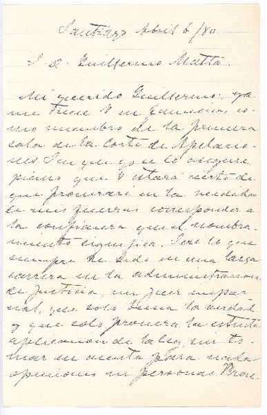[Carta] 1880 abr. 6, Santiago, Chile [a] Guillermo Matta [manuscrito] Fabio Alfonso.