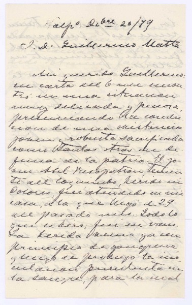 [Carta] 1879 dic. 20, Valparaíso, Chile [a] Guillermo Matta [manuscrito] Fabio Alfonso.