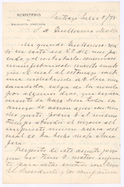 [Carta] 1878 jul. 5, Santiago, Chile [a] Guillermo Matta [manuscrito] Fabio Alfonso.