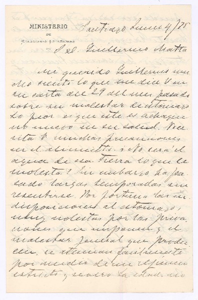[Carta] 1878 jun. 4, Santiago, Chile [a] Guillermo Matta [manuscrito] Fabio Alfonso.