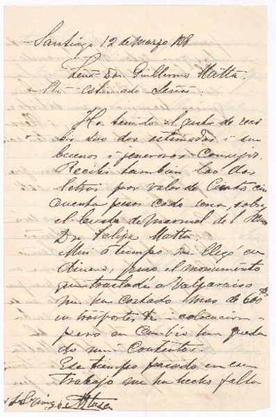 [Carta] 1878 mar. 12, Santiago, Chile [a] Guillermo Matta [manuscrito] Fabio Alfonso.