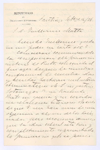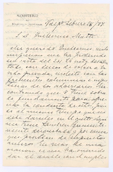 [Carta] 1877 feb. 28, Valparaíso, Chile [a] Guillermo Matta [manuscrito] Fabio Alfonso.