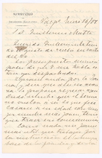[Carta] 1877 ene. 26, Santiago, Chile [a] Guillermo Matta [manuscrito] Fabio Alfonso.