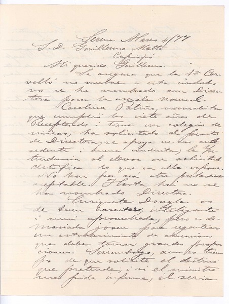 [Carta] 1877 mar. 4, Santiago, Chile [a] Guillermo Matta [manuscrito] Fabio Alfonso.