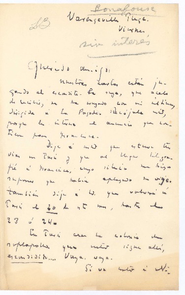 [Carta] [entre 1910 y 1916], Paris, Francia [a] Rubén Darío [manuscrito] Luis Bonafoux.