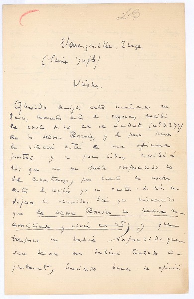 [Carta] [entre 1910 y 1916], Francia [a] Rubén Darío [manuscrito] Luis Bonafoux.