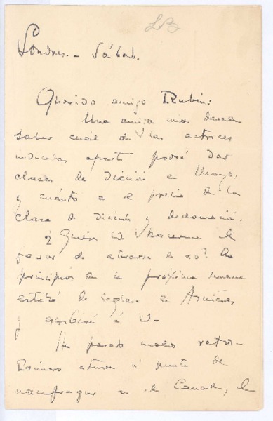 [Carta] [entre 1910 y 1916] sábado, París, Francia [a] Rubén Darío [manuscrito] Luis Bonafoux.