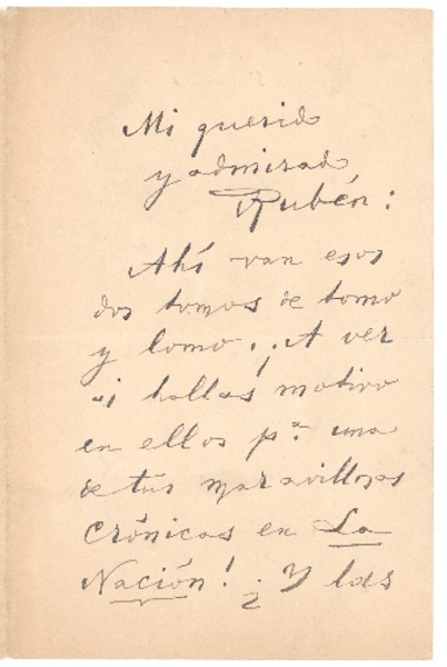 [Carta] [entre 1900 y 1910] Caracas?, Venezuela [a] Rubén Darío [manuscrito] Rufino Blanco-Fombona.