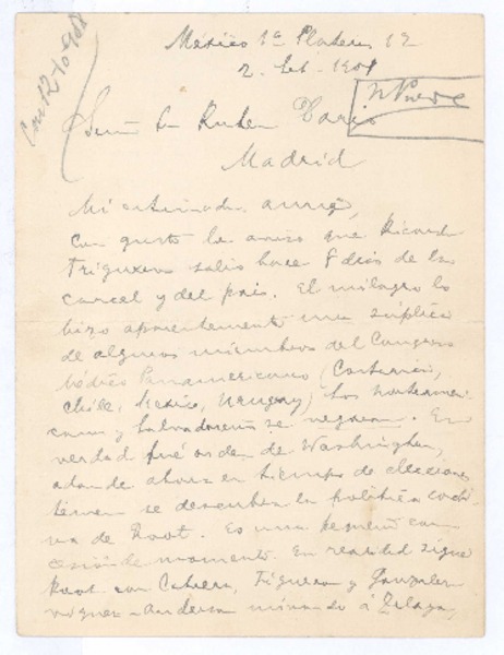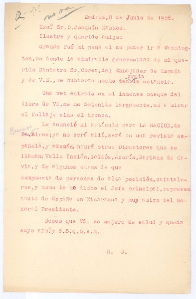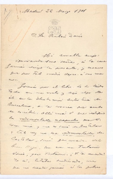 [Carta], c.1901 Madrid, España <a> Rubén Darío [manuscrito] José María Llanas Aquilaniedo.