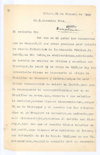 Correspondencia - Autores españoles - RUBIO Y LLUCH, ANTONIO - Poetas nicaragüenses - CORRESPONDENCIA - Darío, Rubén - Manuscritos españoles
