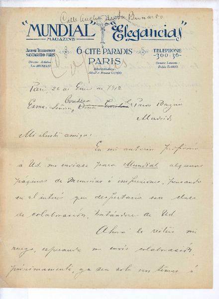 Correspondencia - Autores españoles - Darío, Rubén - Autores nicaragüenses - Manuscritos españoles - Pardo Bazán, Emilia