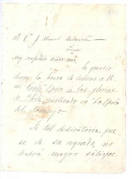 [Carta] 1887 oct. 9, Santiago, Chile [a] José Manuel Balmaceda [manuscrito] Rubén Darío.