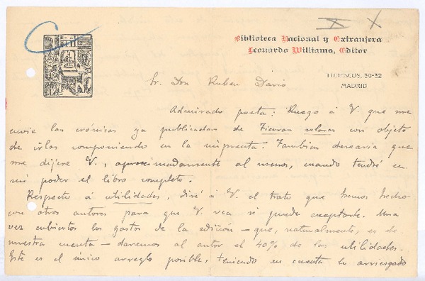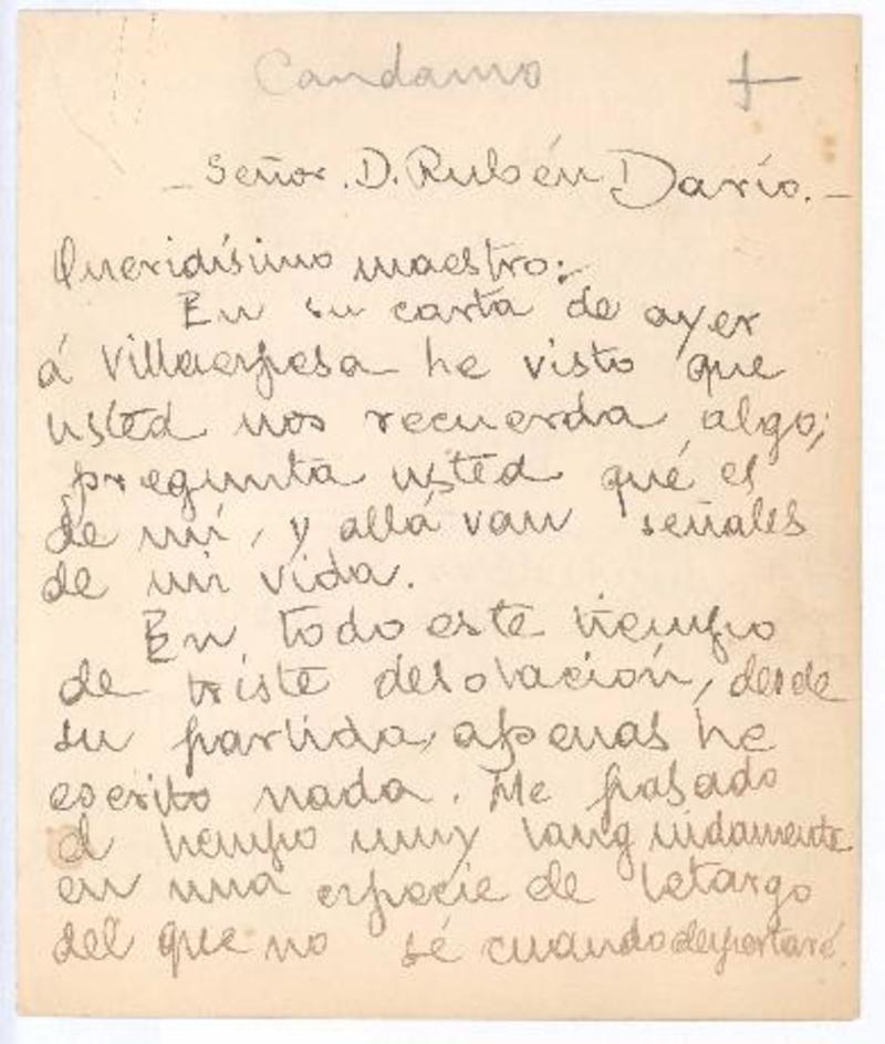 Candamo, Bernardo G. de - Correspondencia - Darío, Rubén - Manuscritos españoles - Poetas nicaraguenses