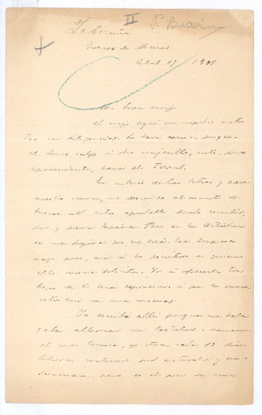 Carta [entre 1900 y 1916], viernes 31, Argentina? [a] Rubén Darío [manuscrito] Eduardo de Ezcurra.