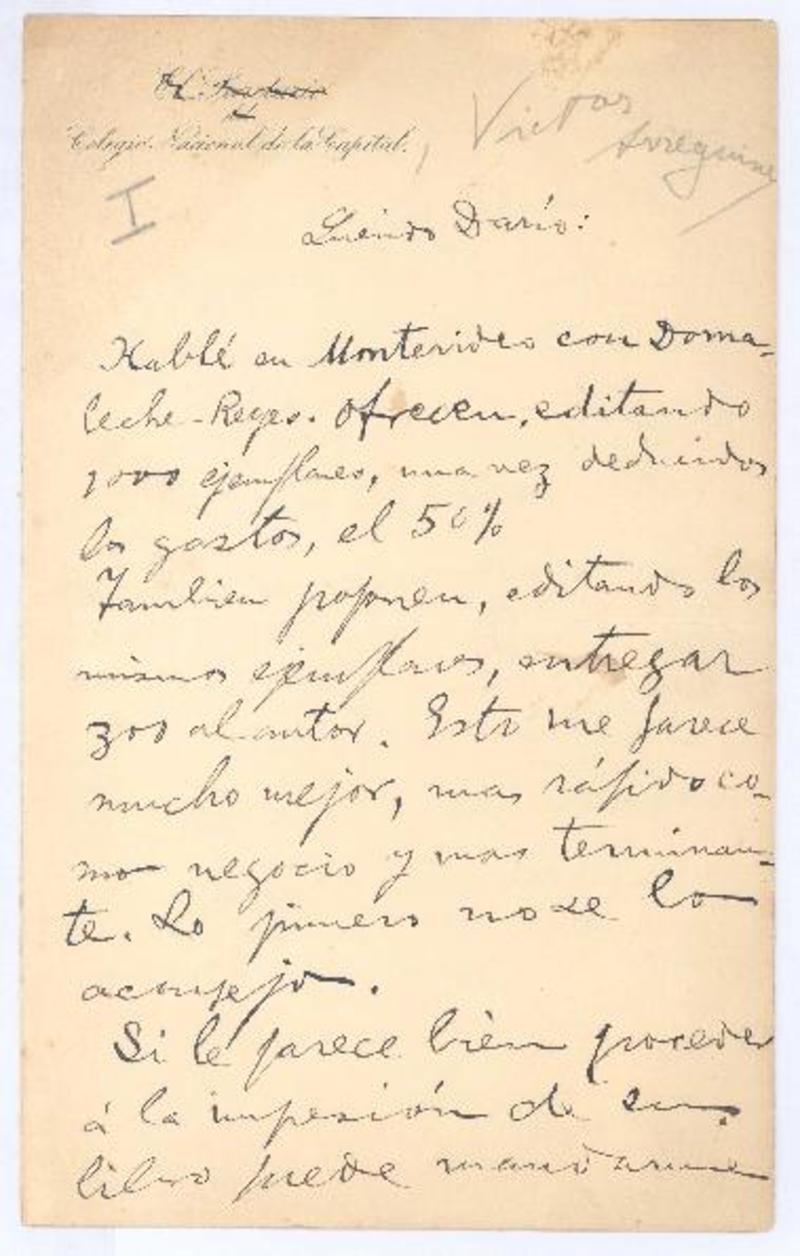 [Carta] 1894 Buenos Aires, Argentina [a] Rubén Darío [manuscrito] Victor Arreguine.