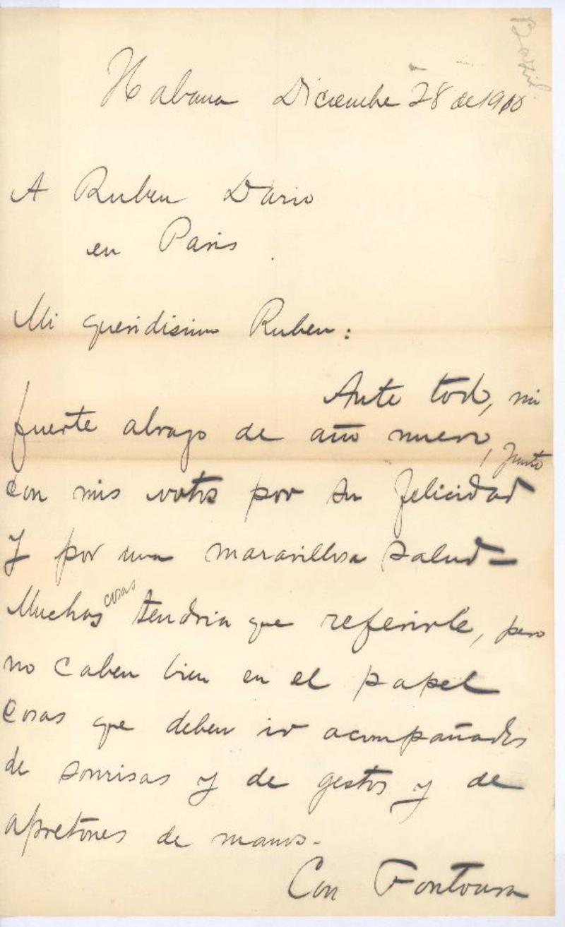 [Carta], c.1900 oct. 25 La Habana, Cuba <a> Rubén Darío [manuscrito] Torres Revona.
