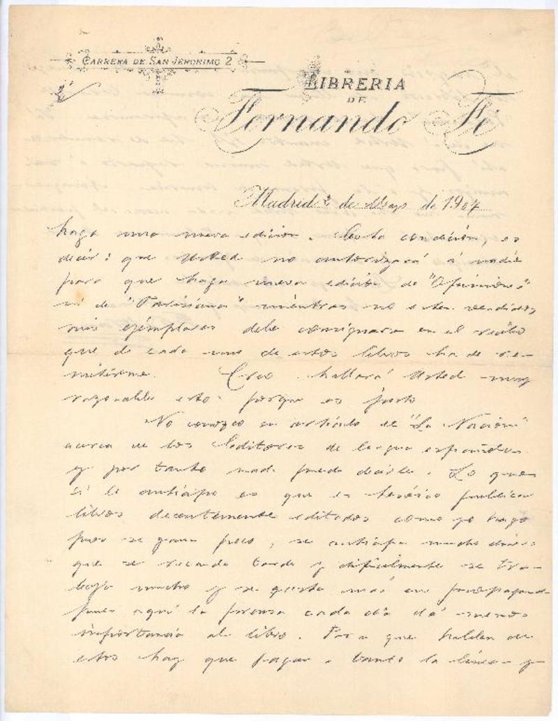 [Carta entre 1903 y 1909] Francia? <a una casa comercial> [manuscrito] Rubén Darío.