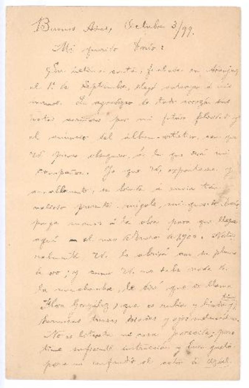 [Carta] 1899 oct. 3, Buenos Aires, Argentina [a] Rubén Darío [manuscrito] Luis Berisso.