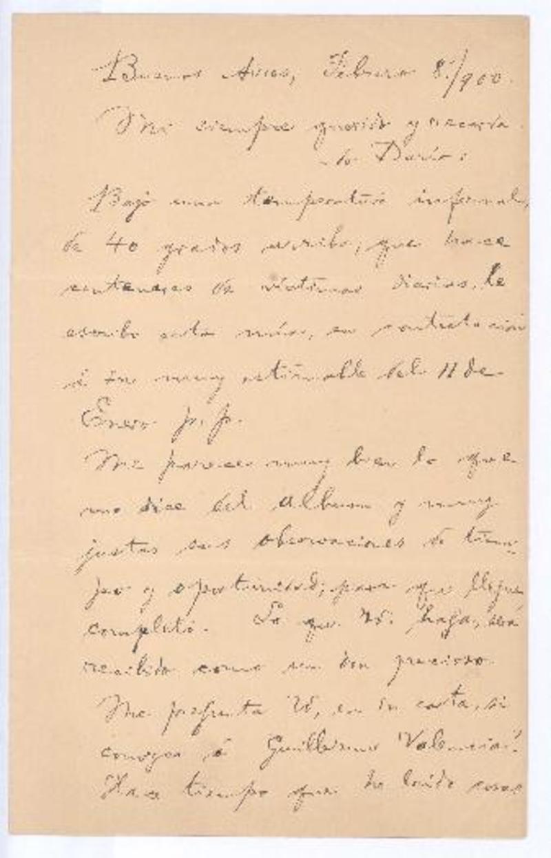 [Carta] 1900 feb. 8, Buenos Aires, Argentina [a] Rubén Darío [manuscrito] Luis Berisso.