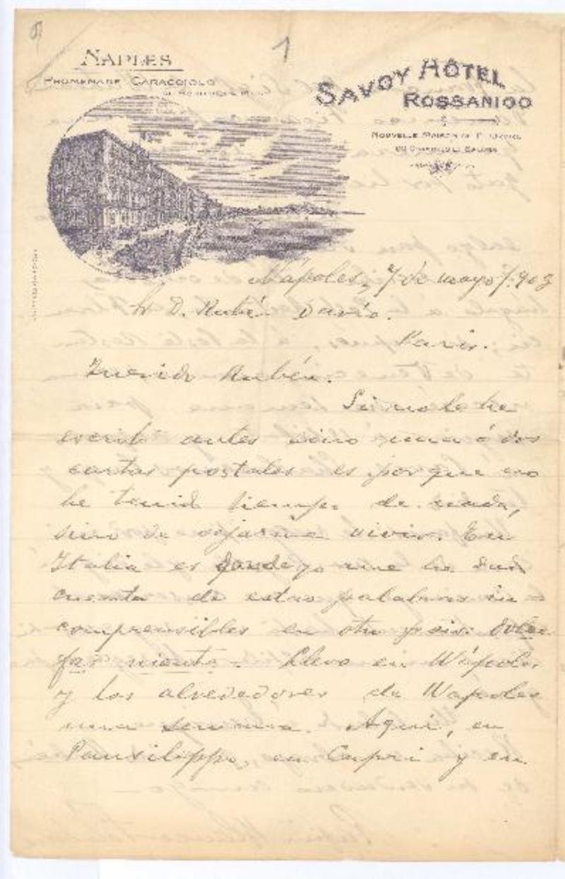 [Carta], 1900 oct. 26 Nápoles, Italia <a> Rubén Darío [manuscrito] Vittorio Pica.