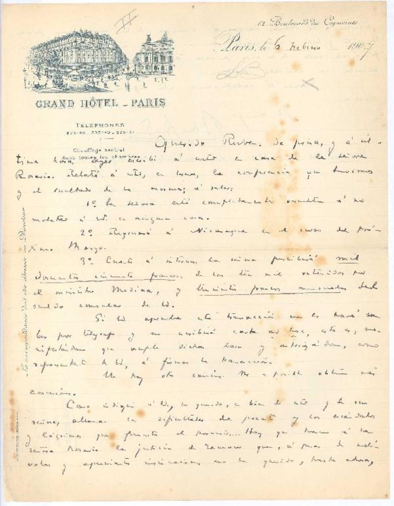 GRANMONTAGNE, F. - Poetas nicaragüenses - Manuscritos españoles - CORRESPONDENCIA - Correspondencia - Darío, Rubén