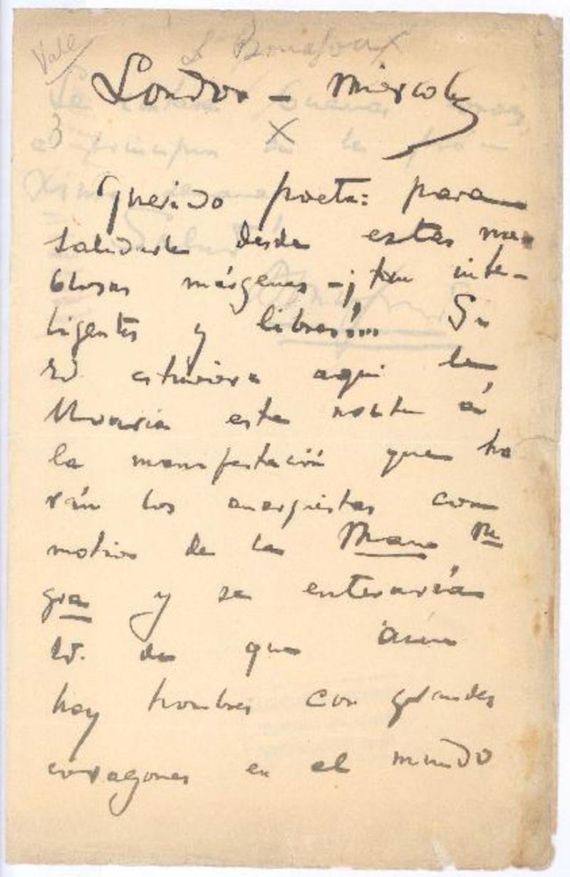 [Carta] [entre 1910 y 1916] miércoles, Londres, Inglaterra [a] Rubén Darío [manuscrito] Luis Bonafoux.