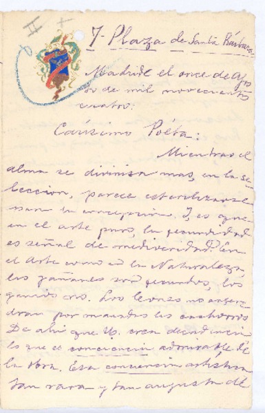 [Carta], 1904 ago. 11 Madrid, España <a> Rubén Darío [manuscrito] José María Vargas Vila.