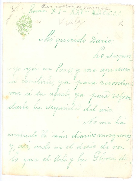 [Carta], 1900 nov. 25 Roma, Italia <a> Rubén Darío [manuscrito] José María Vargas Vila.