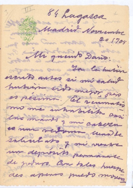 [Carta], 1905 nov. 20 Madrid, España <a> Rubén Darío [manuscrito] José María Vargas Vila.