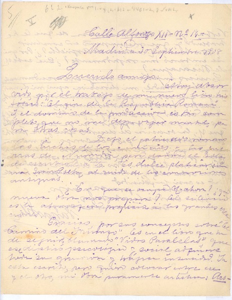 [Carta], 1908 sep. 30 Madrid, España <a> Rubén Darío [manuscrito] José María Vargas Vila.
