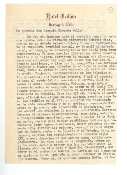Manuscritos colombianos - Correspondencia - Autores chilenos - Autores colombianos - Edwards Bello, Joaquín - Arciniegas, Germán