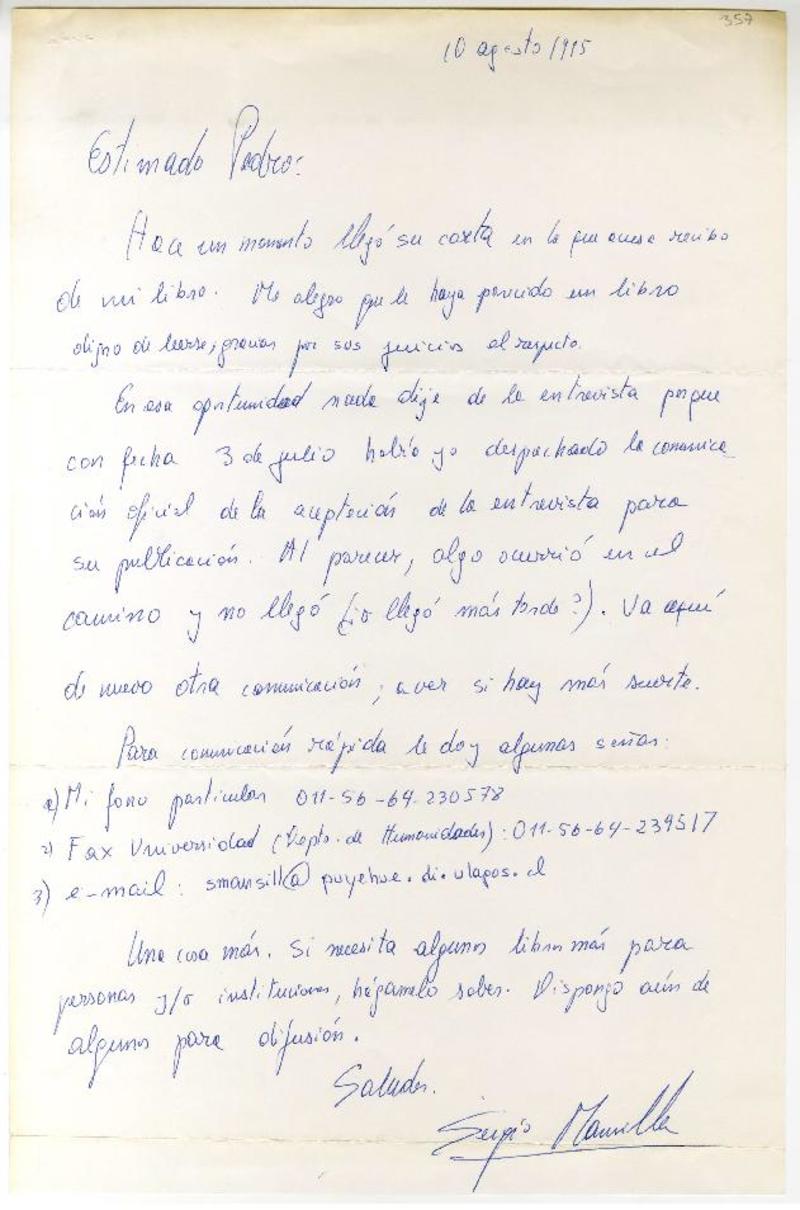 Mansilla Torres, Sergio - Correspondencia - Autores chilenos - Manuscritos chilenos - Lastra, Pedro